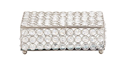 Deco 79 54241 Metal and Crystal Jewelry Box, Silver/Clear