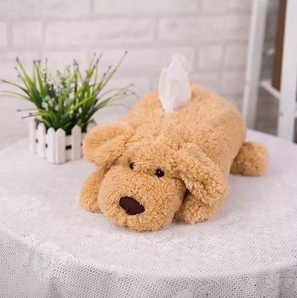 It is a pretty dog stuffed tissue cover that you can put at home or in the car.