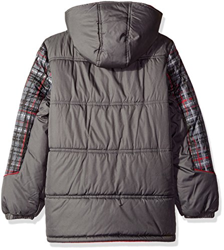 iXtreme Little Boys' Toddler Plaid Print Gwp Puffer, Charcoal, 3T