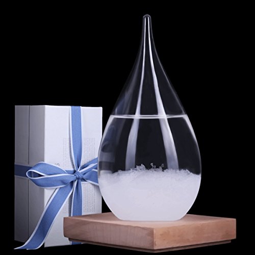 1. Water Shape: Drop shape; 2.Material: Glass and mixed liquid; 3. Time to crystallize depends on your environment. Newly installed It takes one to two weeks and to stabilize; 4. Because there is a risk of fire caused by the lens effect, please do not install the unit in direct sunlight; 5. origin:? What is a Fitzroy Storm Glass and how does it work? Vice Admiral Robert Fitzroy (1805 - 1865) was the Captain? of the HMS Beagle, which was the boat Darwin took on his famous voyage to the Galapagos Islands. He was also a? pioneer in the field of meteorology and perfected numerous barometers. His "Storm Glass" was so popular, in the 1860's? it was distributed by the Royal Crown throughout the British Islands. According to Fitzroy's findings, this glass? barometer forecasts the weather based on changes in the formation of crystals inside the column. If the liquid is clear,? the weather will be bright and clear. If the liquid is cloudy, the weather will be cloudy as well, perhaps with precipitation.? If there are small dots in the liquid, humid or foggy weather should be expected. A cloudy glass with small stars may? indicate thunderstorms. If the liquid contains small stars on sunny winter days, expect snow. If there are large flakes? throughout the liquid, it should be overcast in temperate seasons or snowy in the winter. Crystals at the bottom? indicate frost. Threads near the top mean that it will be windy.