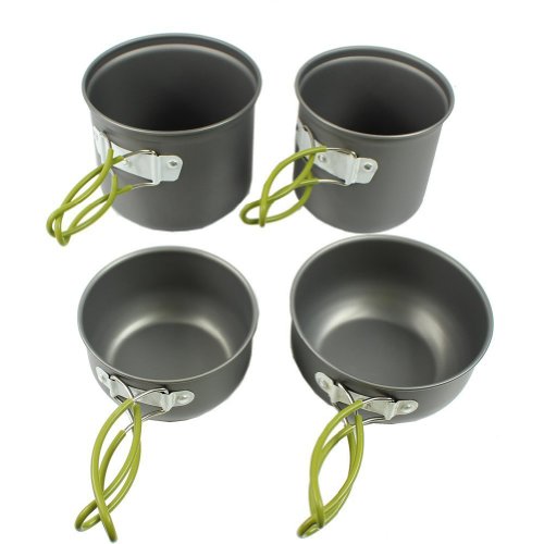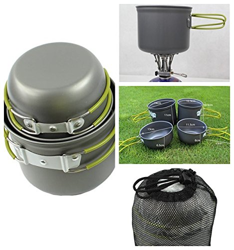 This set is perfect for camping, backpacking, hiking, emergency preparedness, or as part of a survival kit. When the cook set is fitted together (with the lid on the pot) for travel and storage, it contains room to carry a stove, matches,seasoning, salt, pepper, a sponge and many other things to keep your overall space consumption to a minimum.