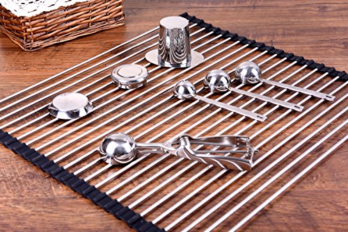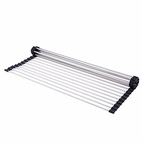 Kingnice Over the Sink Multipurpose Stainless Steel Roll-Up Dish Pot Drying Rack, 20.3"(L) x 18.5"(W), Black