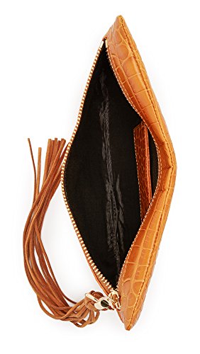 Croc-embossed leather brings a sophisticated feel to this unique Elizabeth and James clutch. A long suede tassel accents the front zip. Faille-lined interior with 1 card slot. Dust bag included.