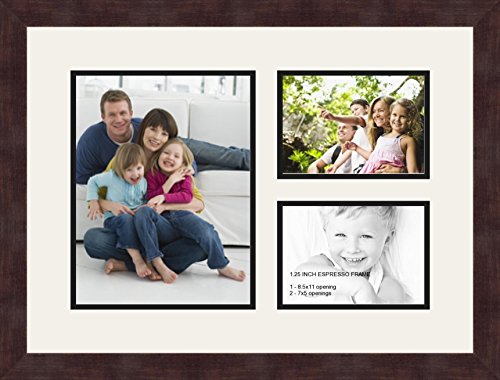 Art to Frames Double-Multimat-480-61/89-FRBW26061 Collage Frame Photo Mat Double Mat with 1 - 8.5x11 and 2 - 5x7 Openings and Espresso frame