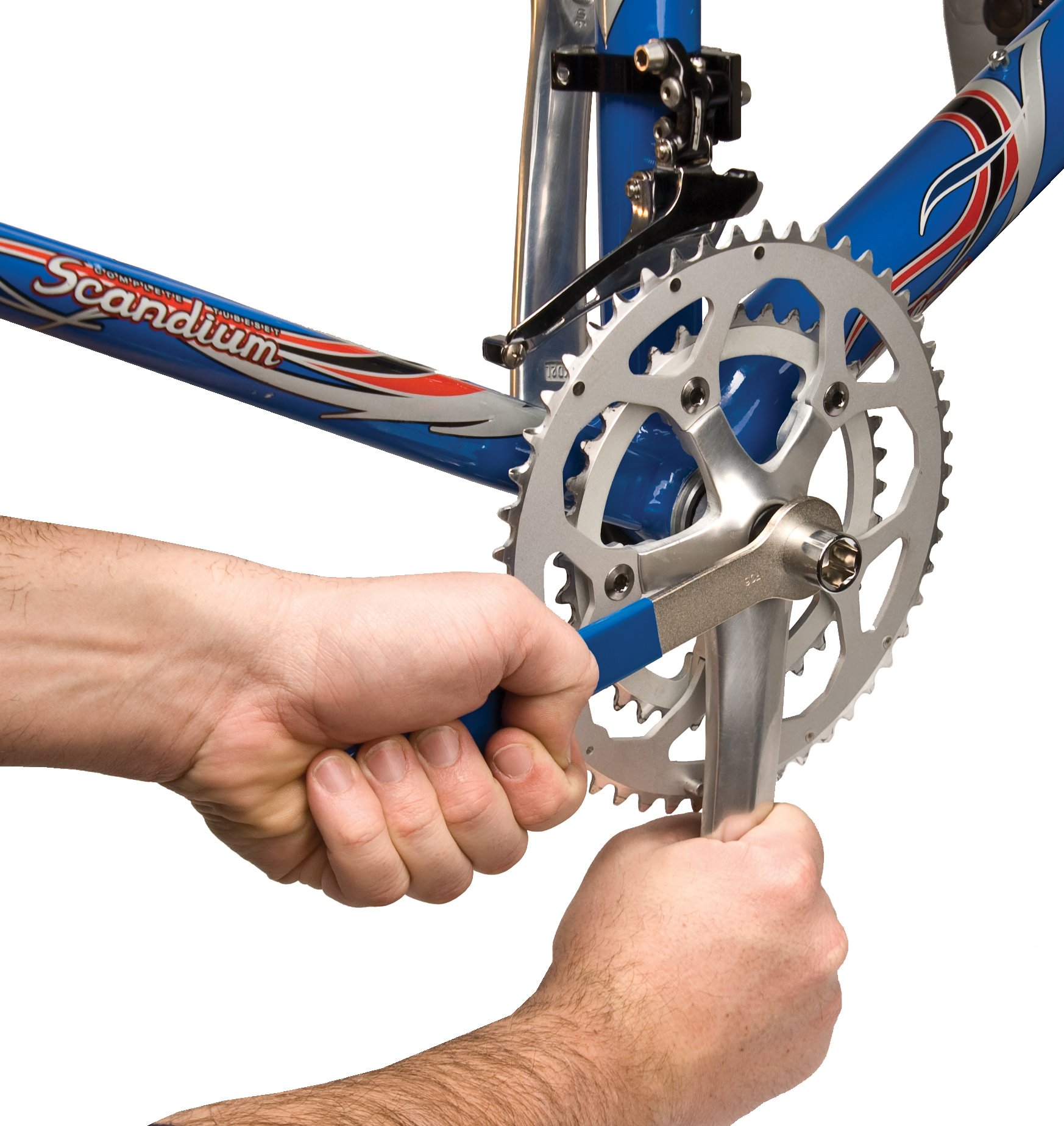We gathered 14 mm socket and 8 mm hex wrench necessary for working crank 's fixing bolts into one tool.