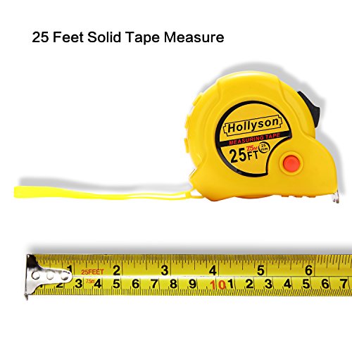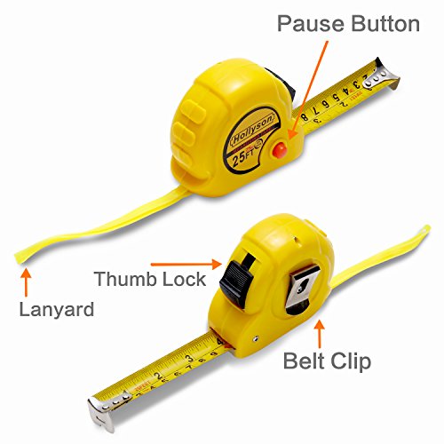 - COMPACT & CONVENIENT DESIGN---The 25ft tape has three rivets end hook, sliding thumb lever locks position, one-touch side button holds position. Auto retracting and sturdy stainless steel belt clip make it easier to carry, easier to operate.