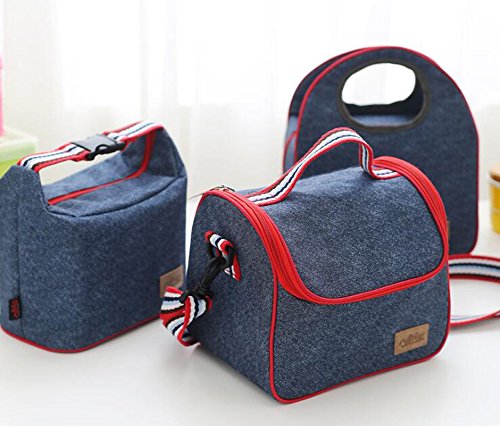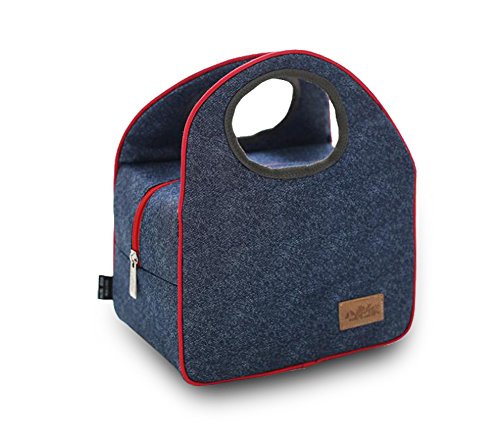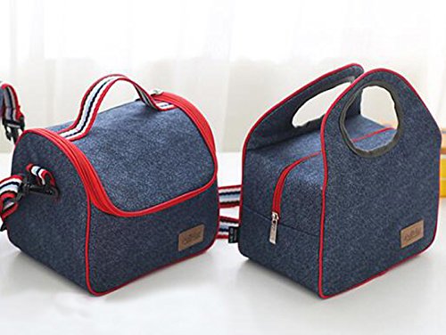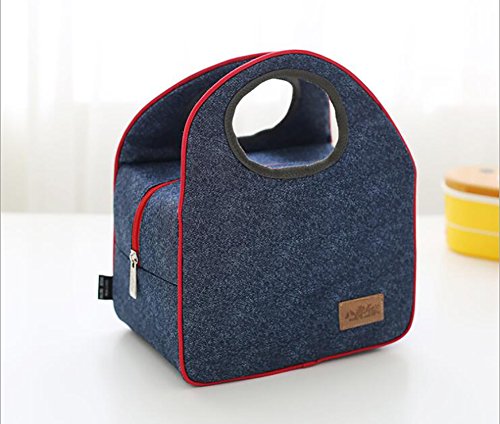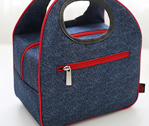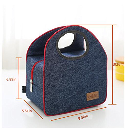 Finex Insulated lining Zippered Bento Lunch Box Tote Bag with Top Strap Handle Denim Blue Oxford Cloth with zipper
