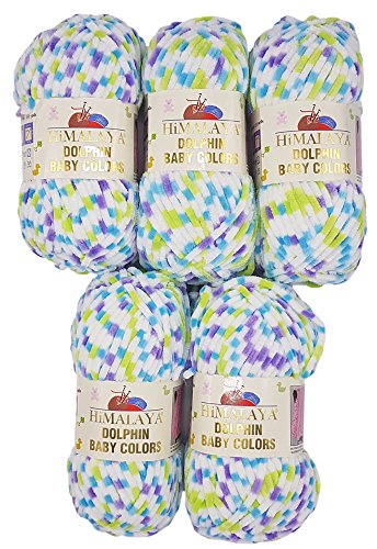 Himalaya Dolphin Baby Colors knitting yarn multicolored 5x100 gram, baby wool, 500 gram (17,63 oz) wool Super Bulky 655 yds (600m) (white blue green 80422)