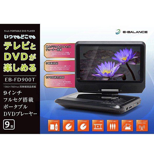 | 商品説明 | ★ 地上デジタル(フルセグ)チューナー搭載 地上デジタルフルセグチューナーを搭載しているので、高画質なフルセグ放送をご視聴いただけます。 ★ 3電源対応 ACアダプター、シガーソケット、内蔵バッテリーの3電源に対応。 室内はもちろんのこと、車内や屋外などでもご使用いただけます。 ★ CPRM再生対応 CPRM方式の著作権保護技術でDVDメディアに記録された地上デジタル放送のコンテンツが再生できます。 * フルセグ/ワンセグ自動切かけ * AC DC、バッテリー(3電源方式) * 車載用バック付き * AV出力端子 * レジューム機能 * 9インチフルセグ搭載ポータブルDVDプレーヤー * 画面:9インチTFT液晶16:9 * 電源:DC12V 1.5A * 画面:9インチTFT液晶16:9 * 解像度:800×480消費電力:18W * 推奨動作温度:0℃~40℃ 対応フォーマット:DVDビデオディスク DVD-R/RW(CPRM/VRモード含む) * オーディオCD CD-R/RW * 動画対応ファイル形式:MPEG(MPEG1 2)・AVI(720×576) * 音声対応ファイル形式:MP3・WMA * 画像対応ファイル形式:JPEG * 入出力端子:AV入力端子、AV出力端子、USB端子、イヤホン出力端子、アンテナ端子 * インターフェース:USB2.0(8GBまで対応)、SDカードスロット(8GBまで対応)、miniB-CASスロット * スピーカー出力:2W×2 * 充電バッテリー:DC7.4V 1800mAh * 充電再生時間:充電時間:(約)4時間/再生時間:(約)2時間(TV視聴約1.5時間)※ご使用環境により変化します * 本体サイズ:約25幅×18.5奥行×4.5高さcm※折畳み時 * 本体重量:約850g(本体のみ) |