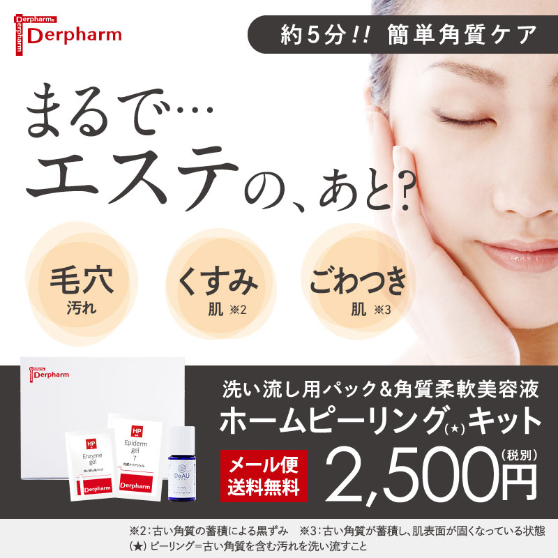 | 商品名 / 内容量 | 毛穴汚れや肌トラブルに週1回の肌トリートメント 洗い流し用パック&角質柔軟美容液のホームピーリングキット(※) (※)古い角質を含む汚れを洗い流すこと エンザイマジェル(酵素ジェル) 2g×4包 エピダーマジェル(角質クリアジェル) 5g×4包 デアウ デイリーピール ミニ(角質柔軟美容液) 10ml |