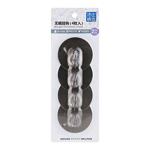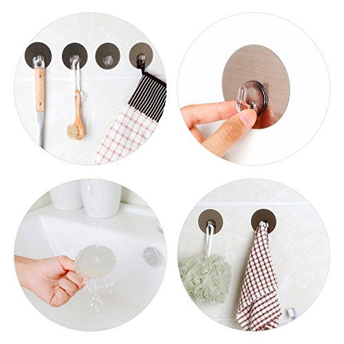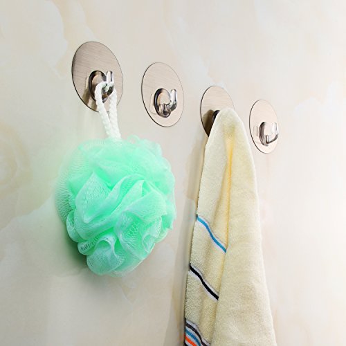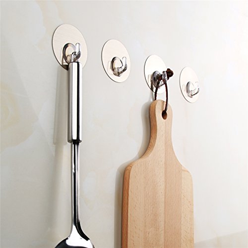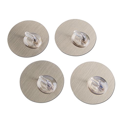 Adhesive Wall Hooks Nail Free No Scratch Reusable Heavy Duty Wall Hooks For Kitchen Bathroom Door Ceiling Hanger, Pack of 4 (Silver)