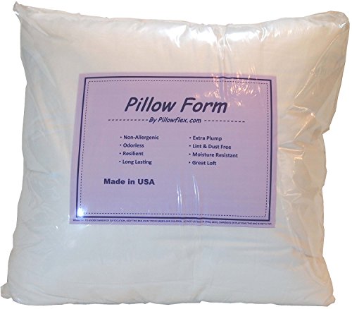 Impress your Friends and Family, this pillow is made to look great in your shams! Great Loft - We start by using high loft American made filler to give the pillow a full plump look that will last years! This is not a wimpy pillow you would find in a big box store No lumps - We use a slick polyester fiber to keep the pillow's filler smooth. Unlike cheap pillows that use dry fibers that will quickly lump up and need replacing Hypoallergenic - This pillow is hypoallergenic, odorless, lint and dust free, free of flame retardant chemicals Covering - We use an American made pillow shell from a high thread count poly cotton blended fabric, that is durable and machine washable (cover is not removable) Made in USA Where to use Use as an insert in decorative shams Couch shams Bedroom shams Crafting Anywhere you need a pillow! Intended for indoor use Care Machine wash cold Tumble dry on low Fluff as needed Sizing Start by measuring your shams, pull tight along the outer seam and measure corner to corner, this should be done for all sham even if marked Please note your insert must be larger than your sham to correctly fill the corners of the sham and give them a nice even look. Small shams 10" to 17" typically need inserts 1" larger. Larger shams 18" typically need inserts 2" larger Please use yellow sizing chart in the images at the top left of this page for detailed sizing info