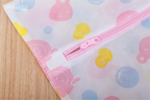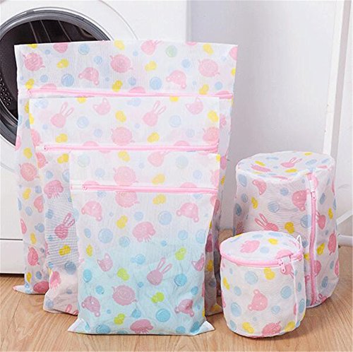 Set of 5 Reinforced Printed Mesh Laundry Bags-1 large, 1 medium, 1 small & 2 bra bags for Laundry, Blouse, Hosiery, Stocking, Underwear, Bra and Lingerie, Travel Laundry Bag