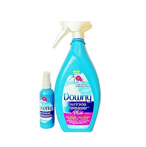 The Downy Wrinkle Releaser Plus 33.8 Fl Oz Spray and a 3.0 Fl Oz, TSA approved, Travel Size make and excellent combination! Downy Wrinkle Releaser Plus is an outstanding product for removing wrinkles. Take your clothing, spray with Downy Wrinkle Releaser Plus, tug and smooth; hanging if possible. Amazing with wrinkles; spray, smooth, and walk away. You will be amazed! This also works to reduce static electricity, remove odors, as a Fabric Refresher; may be used when ironing to ease the removal of set-in wrinkles! DIRECTIONS: Spray around 8 inches away. Spray fabrics with a sweeping motion until slightly damp. Use more spray for heavy fabrics or severe wrinkles. Tug and smooth away wrinkles. Hang dry. Reduce Static Cling: Hold bottle 6-10 inches from item spray lightly and evenly before wearing. When wearing clothes, spray outside of garment first. Note: Safe on virtually all fabrics. On fabrics which may water-spot (silk, rayon), test a hidden area first. Use only as intended. **Bubble Wrapped around, and over, the sprayer head to provide added protection during shipping and the set is Poly-bagged together in case damage should occur during transport by various carriers. This is done to protect any other items you may have in your order.