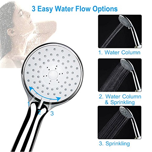 Handheld Shower Head, AOLYS High Pressure Flow with 3 Function, 60'' Stainless Steel Hose Angle Adjustable Bracket 5.2'' Chrome