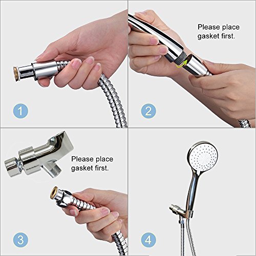Package includes one handheld shower head, one 5 feet extension hose, one angle-adjustable overhead bracket, one Teflon tape and two anti leakage rubber pads. AOLYS provides lifetime warranty!