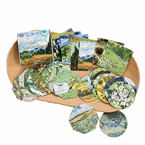Washi Masking Tape Set of 8 Rolls + 90 pcs Planner Stickers, Van Gogh's Paintings Series Collection for DIY Crafts, Festival Gift Wrapping, Office Party Supplies, Christmas, Cards, Scrapbook