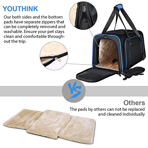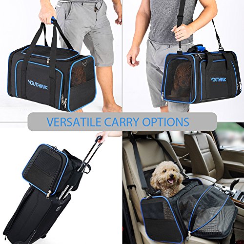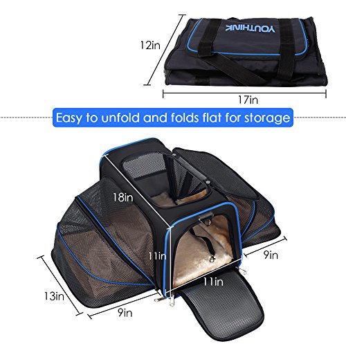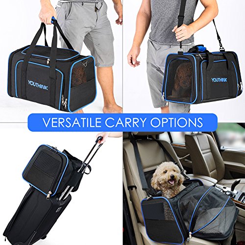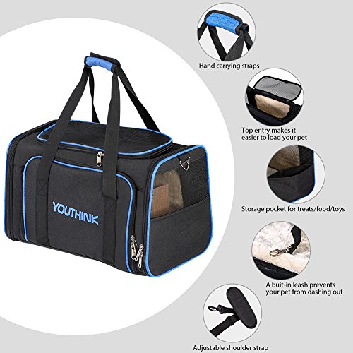 Studio : youthink us Publisher : youthink us Binding : Misc. Product Description Color: Black Size: 19"L x 12"W x 11"H Why do you choose YOUTHINK Pet Carrier Purse? Our expandable pet travel carrier was designed to keep your pet protected, secure, and comfortable when traveling by plane or car or for routine trips to the vet. Product Feature: - The Extensibility of large dog carrier gives your pets plenty of room. - Top and side entry options make it much easier to comfortably load pets in the carrier. - Easy to clean and folds flat for storage. - Meets on board requirements of most major domestic airlines. - Side and top zipper openings allows you to safely interact and comfort your pet while traveling. - The cozy fleece pads of dog carrier purse can be completely removed and washable. - Carrying handles and adjustable shoulder strap allow for many carrying options. Kindly Notes: - Before purchasing please measure your pet - Length: neck to base of tail; Height: floor to top of shoulder.