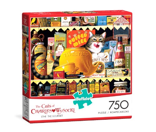 -. Binding : Toy -. Brand : Buffalo Games -. EAN : 0885113285977 -. Feature : Contains 750 pieces / Finished size is 24 x 18 Inch / Manufactured from premium quality materials / Made in the United States / Bonus poster included for help in solving -. IsAdultProduct : 0 -. ItemPartNumber : 17072 -. Label : Buffalo Games -. LegalDisclaimer : Ages 14+ -. Manufacturer : Buffalo Games -. Model : 17072 -. MPN : 17072 -. PackageQuantity : 1 -. PartNumber : 17072 -. ProductGroup : Toy -. ProductTypeName : TOYS_AND_GAMES -. Publisher : Buffalo Games -. Studio : Buffalo Games -. Title : Buffalo Games Charles Wysocki Cats, Ethel The Gourmet Puzzle - 750pc Jigsaw Puzzle -. UPC : 885562968919 -. Warranty : 90 day warranty against manufacturer defects