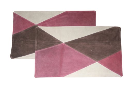 Collection Suede Cushion Cover in Geometric Patterned Browns and Fushia Set of Two