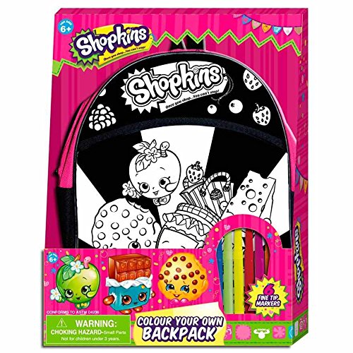 -. Feature : Colour Your Own Shopkin BackPack Back to School / Back to School / All Charcters on Bag / Special Edition / 24 Stickers to Decorate the Bag,6 Fine Tip Markers
