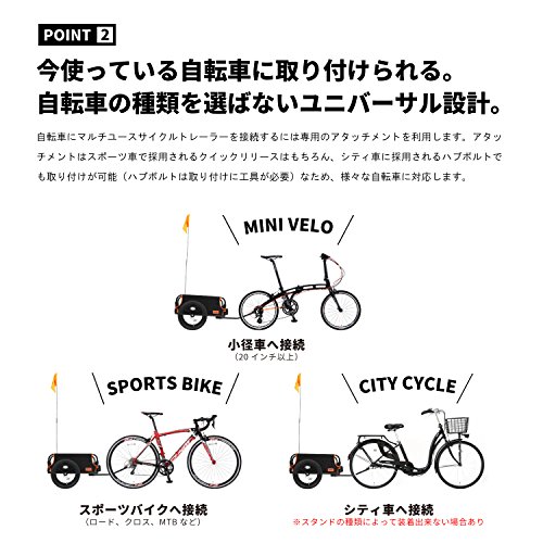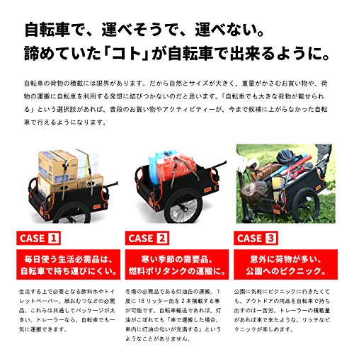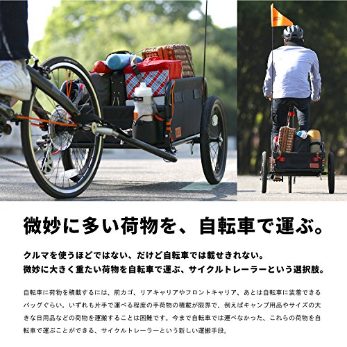 自転車に荷物を積載するには、前カゴ、リアキャリアやフロントキャリア、あとは自転車に装着できるバッグぐらい。いずれも片手で運べる程度の手荷物の積載が限界で、例えばキャンプ用品やサイズの大きな日用品などの荷物を運搬することは困難です。今まで自転車では運べなかった、これらの荷物を自転車で運ぶことができる、サイクルトレーラーという新しい運搬手段。