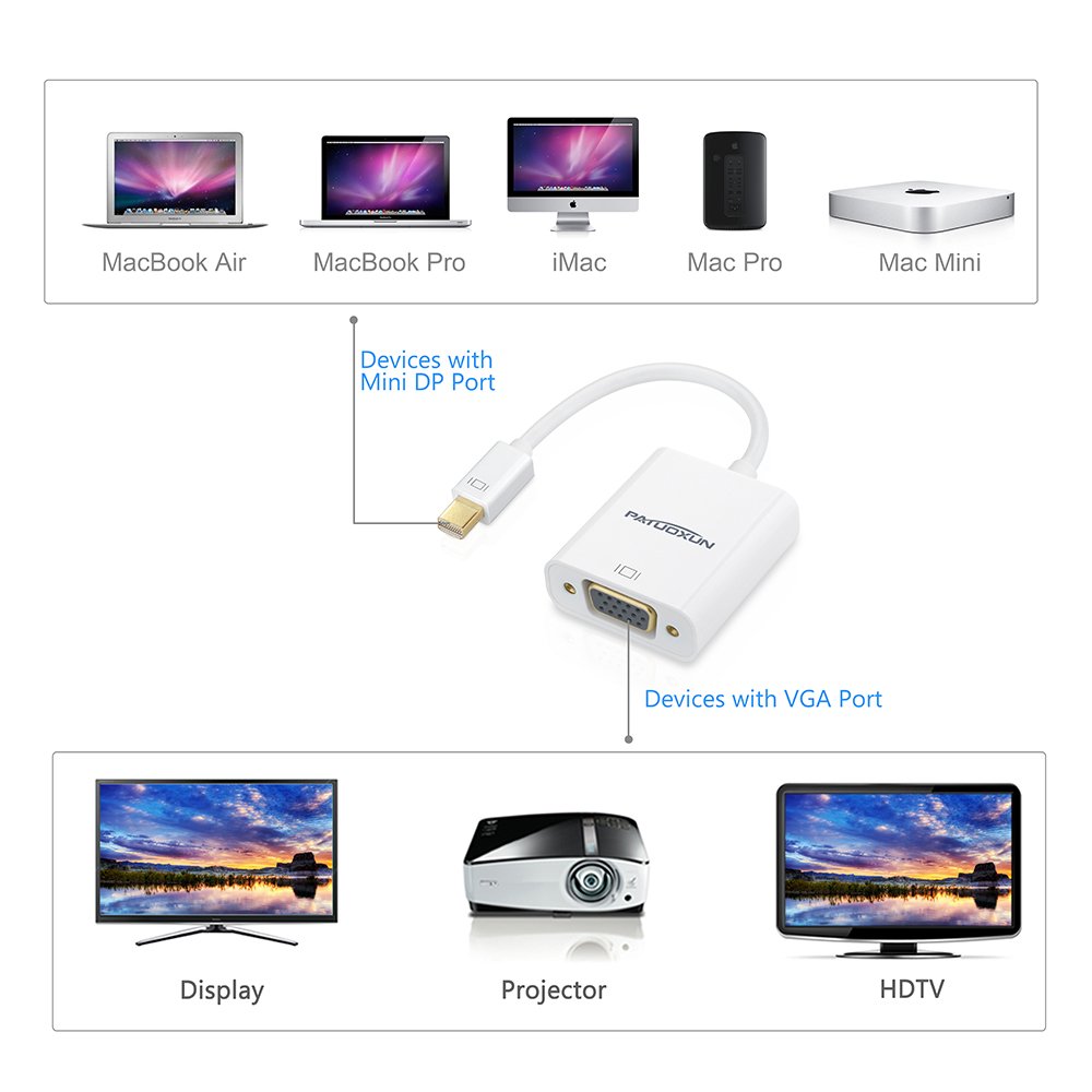 The MacBook, MacBook Pro, MacBook Air, Surface Pro / Pro 2 / Pro 3 are Mini DisplayPort conversion adapters that can be connected to external displays and projectors using this adapter.