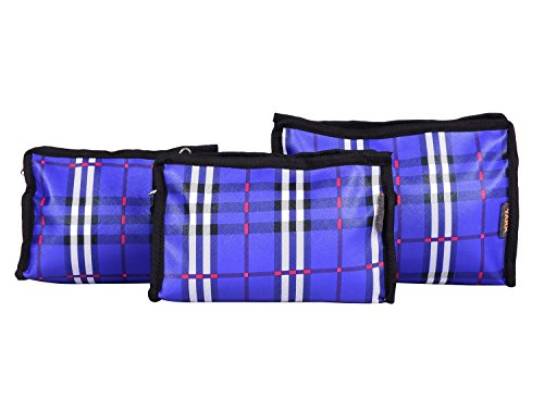 -. Brand : Yark -. Color : RoyalBlue -. Department : unisex-adult (luggage only) -. Feature : Dimensions:-Large-24lx16hx8wcm,Medium-21lx12hx7wcm,Small-17lx11hx6wcm / Set of 3 / 3 Compartments in Each Pouch / Quick Access Zippered Opening / Easy to Sort, Segragate & Store Your Belongings. -. Model : Y603RBlueCheckSetof3 -. ProductGroup : Apparel -. ProductTypeName : LUGGAGE -. Size : medium -. Title : Yark Set of 3 Multipurpose pouch set kit for Toiletries, Cosmetics etc.