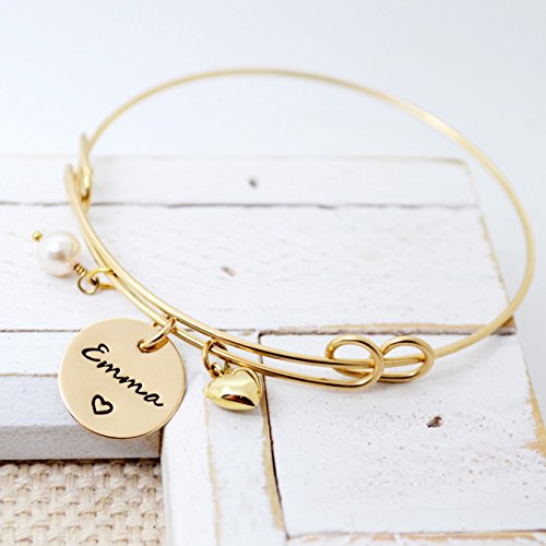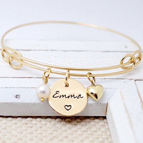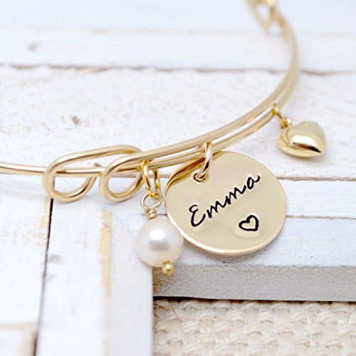 -. Title : 14K Gold Filled Personalized Hand Stamped Bangle Bracelet - Love It Personalized