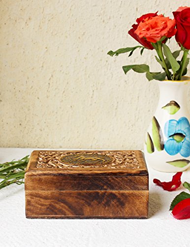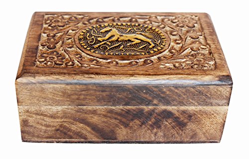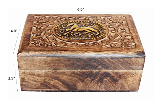 Valentine Day Gifts Hand Carved Wooden Keepsake Decorative Jewelry Trinket Box Storage Organizer Horse Design with Floral Patterns for Girls Women