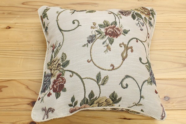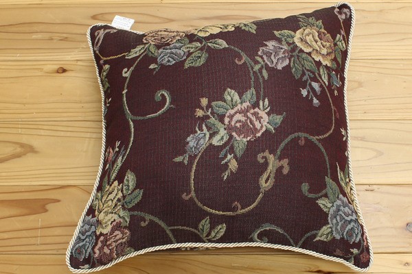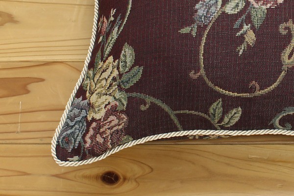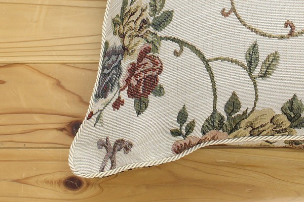 エレガンス柄のクッションです。人気の柄で洋室にもぴったりの商品です。表地にはジャガード織の生地を使用しているため上品な風合いのある商品です。