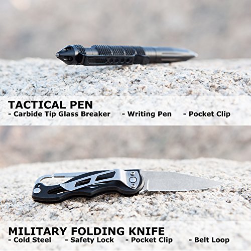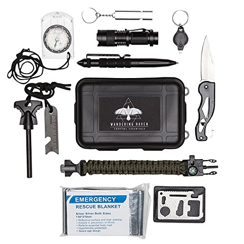 - ✅ THE OUTDOORS EMERGENCY ESSENTIALS YOU NEED IN 1 CASE - Our survival gear set includes a Survival Bracelet, Tactical Pen, Army Folding Knife, Fire Starter, Compass, Tactical LED Flashlight, Whistle and more professional life saving tools. All in 1 tough case