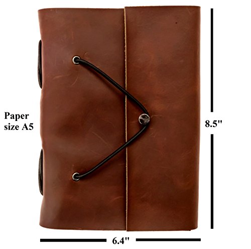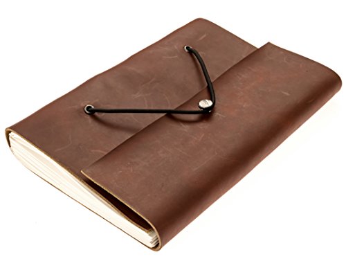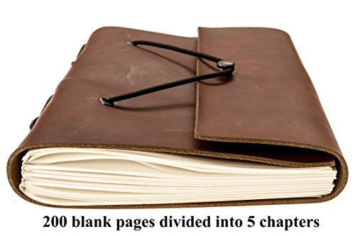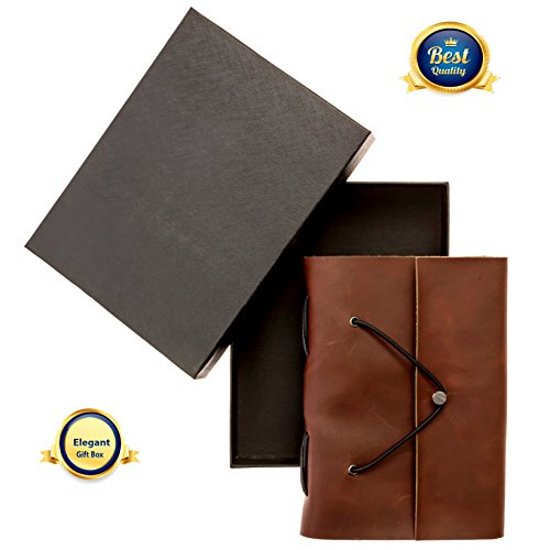 Genuine Leather Notebook - Handmade Journal, Diary with 200 Blank Pages, Gift Box - Premium Cowhide Leather Cover (Dark Brown)