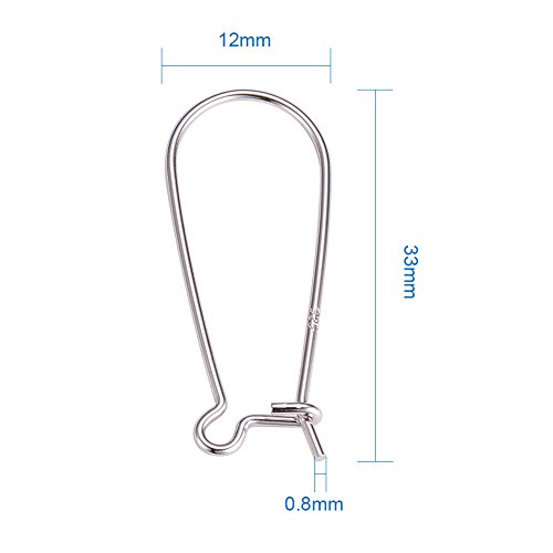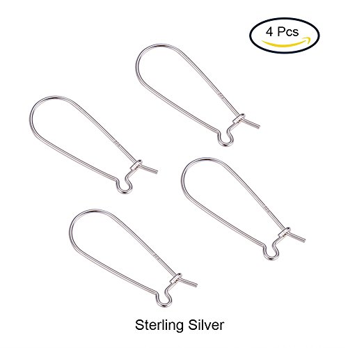 PandaHall Elite 925 Sterling Silver Earring Hoop Components Kidney Wires Hooks 33x12.7mm Lever Back Earrings 4pcs/bag
