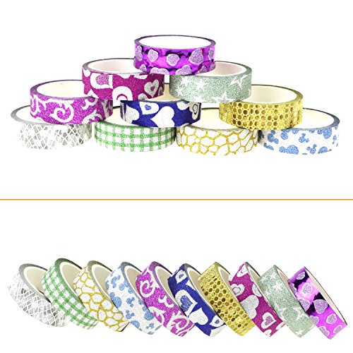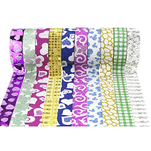 - ❤The masking tapes with glittery design are perfectly suitable for a wide variety of packaging and decoration. Can be used for scrapbooks, photo albums, gift boxes, mobile phones, keyboards, cups and so on.