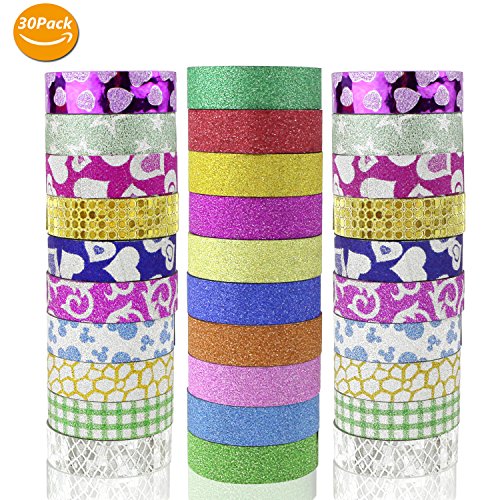 Homga Glitter Washi Tape, 30 Pack Washi Masking Adhesive Tape, Glitter Scrapbook Decorative Tape Rolls For DIY Crafts, Gift Wrapping