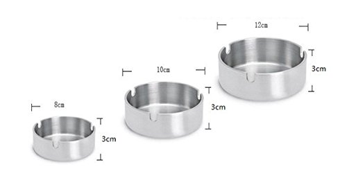 -. Feature : Product Name : Ashtray;Material : Stainless Steel / Package Included:Package Included:Set of 3 Stainless Steel Ashtray. / L size:12x3CM.Weight : 223g,M size:10x3CM.Weight : 164g, S size: 8x3CM.Weight : 116g. / Simple, elegant, stylish and easy to clean.A beautiful art decoration for your desktop. / Suitable for Family,House,Bar,Cafe,Hotel,Restaurant,Party etc.Great piece, makes a perfect gift for any holiday or occasion.