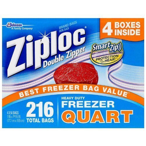 Ziploc Double Zipper Quart Freezer Bags, 216 Count by Ziploc
