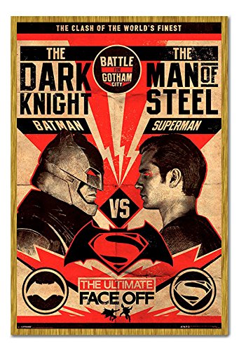 -. Title : Batman V Superman Fight Poster Magnetic Notice Board Oak Framed - 96.5 x 66 cms (Approx 38 x 26 inches)