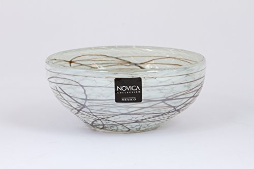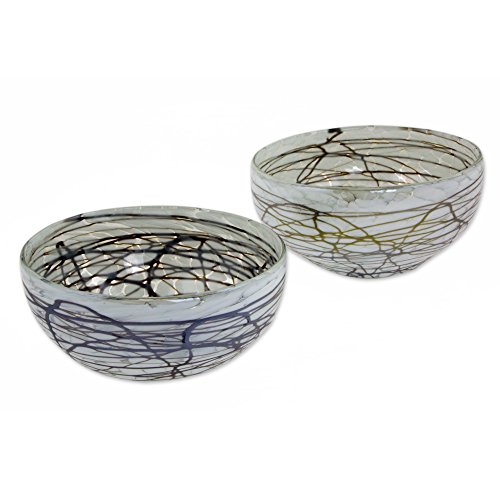 NOVICA Hand Blown Clear Brown Eco-Friendly Glass Bowls, 16 oz. 'Brown Swirling Web' (pair)