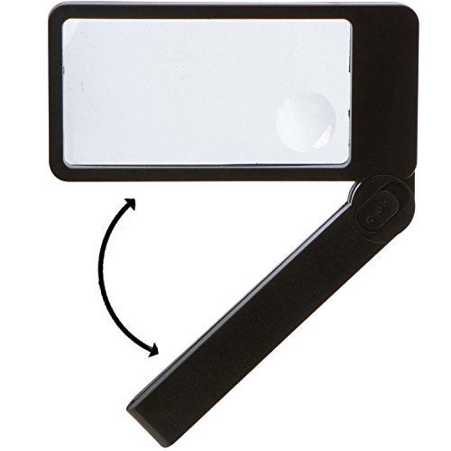 Magnifying Glass--Lighted magnifier for reading with bright LED lights, folding handle--easy to store/carry. Rectangular lens- best for reading....