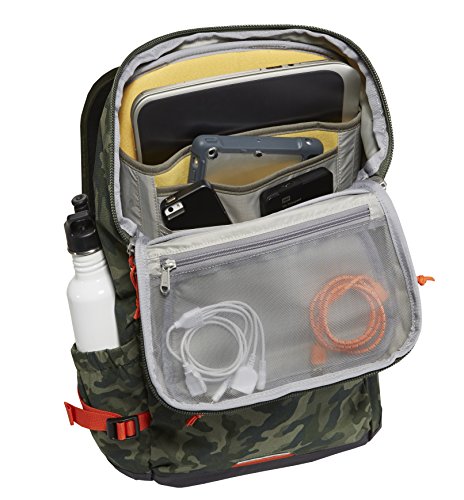 -. Feature : Top load main compartment reveals padded laptop cell (will hold most 14-16 laptops / Plenty of main compartment capacity for books, shoes, and clothing / Reflective light loop for better night safety / Slip tablet pocket with cord and battery storage / Side water bottle pockets with compression straps