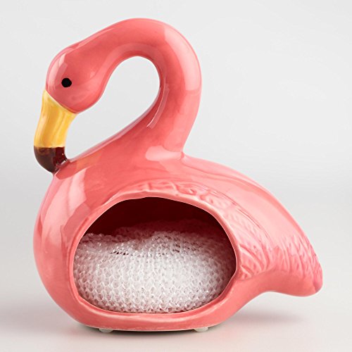- Crafted of ceramic with a painted finish and embossed feathers, this trendy sponge holder adds your favorite pink wading bird to your sink area