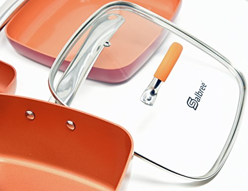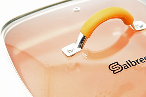 Studio : Salbree Publisher : Salbree Product Description Looking for a replacement lid for your Copper Chef or Red Copper Pan? Maybe you bought a pan without a lid and now you want one. Look no further, we offer the solution. This 9.5" square pan will fit both the short and tall Copper Chef pans and the short, Red Copper Pan by Bulb Head. It features a heat-resistant, silicone-wrapped handle. The lid is made of tempered glass, which is oven-safe and heat resistant up to 450° Fahrenheit. The lid top has a stainless-steel rim and handle. The lid features a vent hole, for your convenience and also a riveted handle for strength. The lid does not fit the tall, Red Copper Pan, Red Copper Square Dance Pan any of the Gotham Steel pans. 0