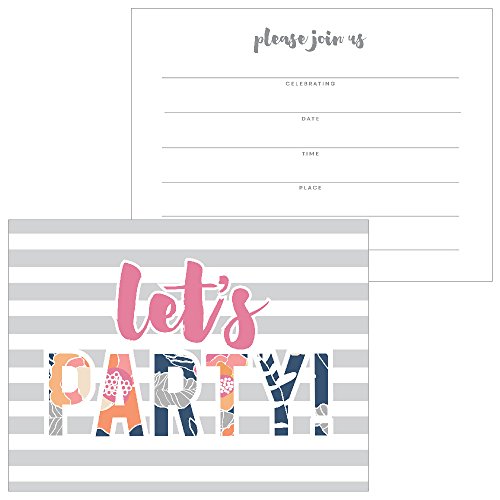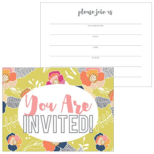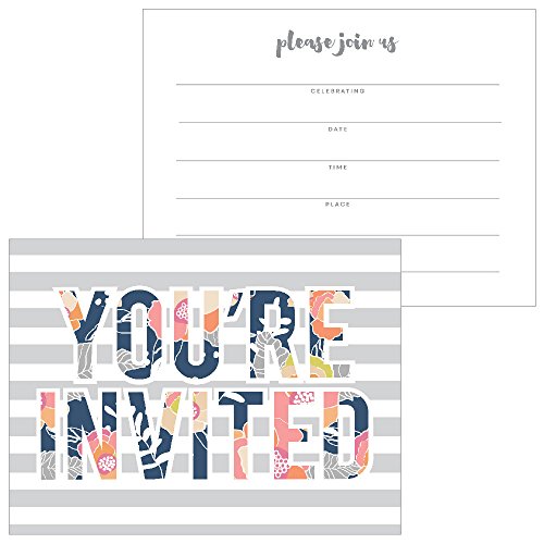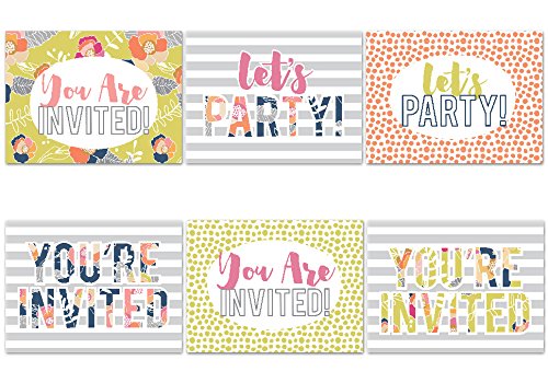 Party Invitations - Vibrant Bloom Set - 36 Invites - Gray Envelopes Included