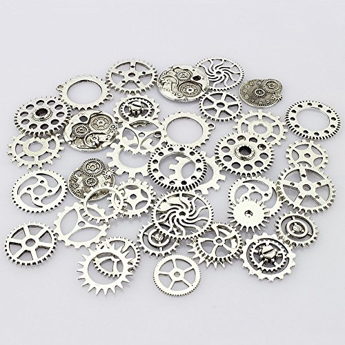 JGFinds 100 Pc Mixed Silver Tone Gears Wheels - Watch Findings, DIY Crafts, Jewelry Making, Steampunk & Charms