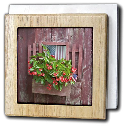 -. Brand : 3dRose -. Feature : Dimensions (in inches): 6 x 6 / Includes 2 - 4" x 4" high gloss ceramic tiles / Made out of solid wood / Tile panels connected by wooden dowels / Some assembly required -. Label : 3dRose -. Manufacturer : 3dRose -. ProductGroup : Kitchen -. ProductTypeName : KITCHEN -. Publisher : 3dRose -. Studio : 3dRose -. Title : 3dRose Danita Delimont - Garden - Window box planter with begonias and American flags on old red shed - Tile Napkin Holders