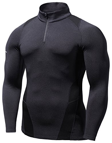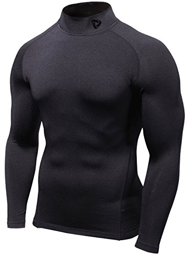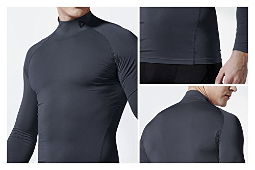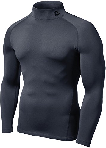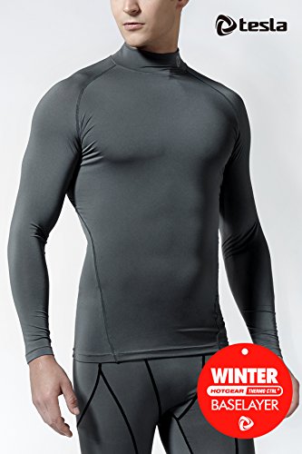 CLSL TM-T32-CGY_Large Tesla Men's Thermal WinterGear Compression Baselayer Mock Long Sleeve T Shirts T32