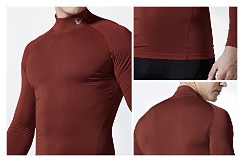 CLSL TM-T32-BR_Medium Tesla Men's Thermal WinterGear Compression Baselayer Mock Long Sleeve T Shirts T32