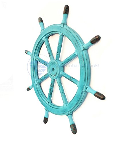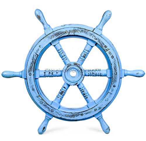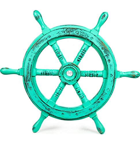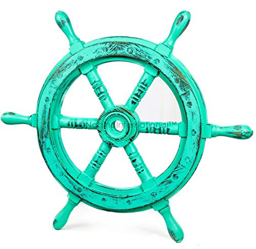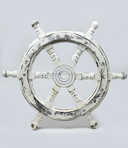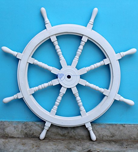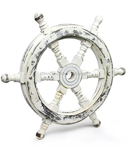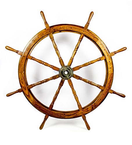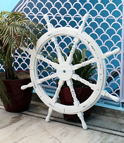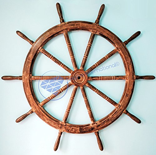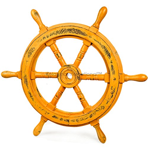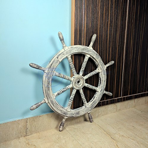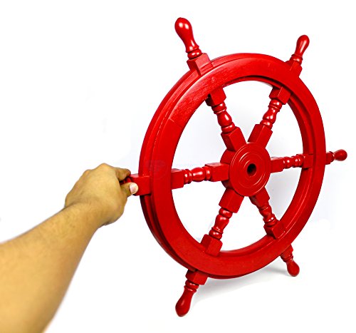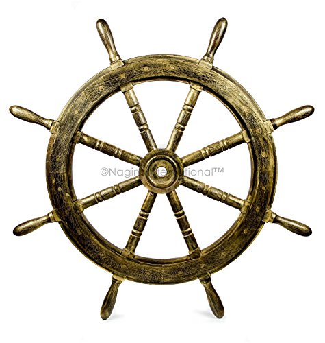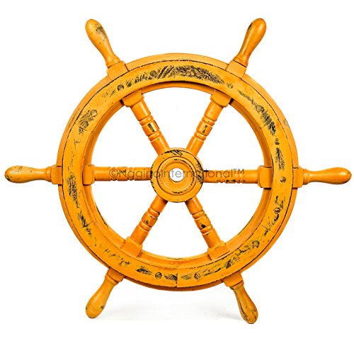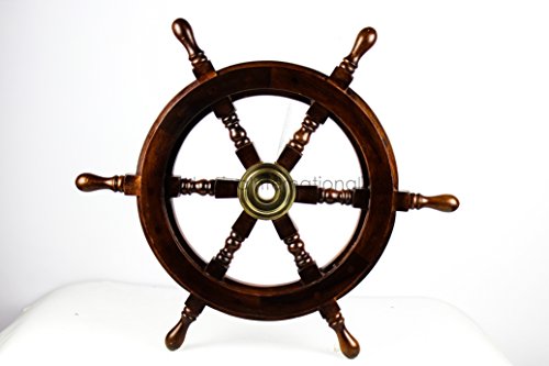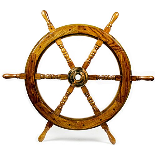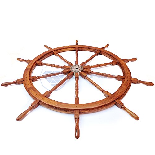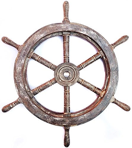 Nagina International's Nautical Hand Crafted Wooden Premium Ship's Wheel! The Exclusive pirate's decor wall accent/sculptures. The exclusive Nautical Ship's wheel range is sold solely by Nagina International and such quality shall never be found through any other vendor as the product is right out of the factory. Built of out true solid hardwood(Indian Rosewood), we bring you the best possible craftsmanship with the quality material being used in the reproductions of these beautiful Nautical Ship Wheels. Being in the Nautical Industry for several decades we have reached a point where we never compromise the quality of Nautical Ship Wheels which we offer to our customers! The Premium Nautical Ship Wheels are perfect Nautical Art Piece with quality craftsmanship and material! Built with dedication and precision by our experienced Artisans at Nagina International. The Premium Nautical Ship Wheels make great wall decor and decorative accent for Pirate's Theme Lovers! The Beautiful Hand Crafted Nautical Ship Wheels are going to leave you and your loved in a complete awe and crave for wanting one! The Nautical Ship Wheels do seem better in person as you are able to fee and grasp the quality and material! The Exclusive Nautical Wall Decor are easy to hang on a wall as the needed supplies are attached to the product itself! Wall mounting hooks and screws are supplied. The exclusive range widens from Clocks and Mirrors through Photo Frames (Photographic Frames). Keep Exploring Nagina International for impressive and lovely Decor! I'm sure you will find something for you and your loved ones!Feature